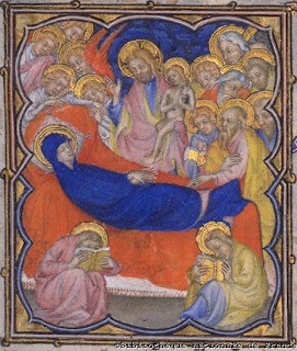 Quand Pierre entonna l'hymne, toutes les puissances des cieux répondirent par l'Alléluia. Alors, le visage de la mère du Seigneur brilla plus que la lumière. Et, se levant, elle bénit de sa propre main chacun des apôtres. Et tous glorifièrent Dieu. Le Seigneur, étendant ses mains pures, reçut son âme sainte et irréprochable. Et, pendant que sortait cette âme irréprochable, le lieu fut rempli d'un parfum et d'une lumière indicible. Voici qu'on entendait une voix céleste qui disait :