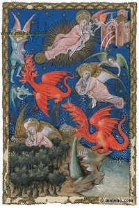 4. de sa queue, il entraînait le tiers des étoiles du ciel, et il les jeta sur la terre. Puis le dragon se dressa devant la femme qui allait enfanter afin de dévorer son enfant, dès qu'elle l'aurait mis au monde.